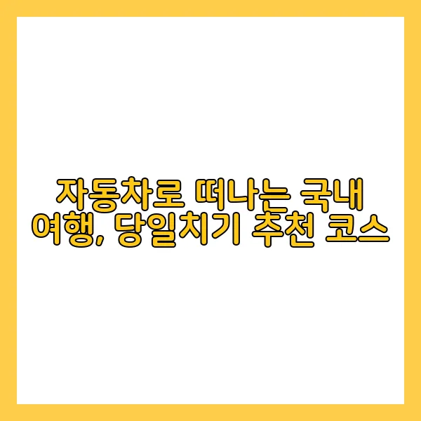 이처럼 다양한 지역에서 자동차를 이용해 당일치기 여행을 즐길 수 있습니다. 각 코스의 매력을 느끼고, 소중한 추억을 쌓아보세요! 여러분의 여행이 더욱 행복하길 기원합니다.